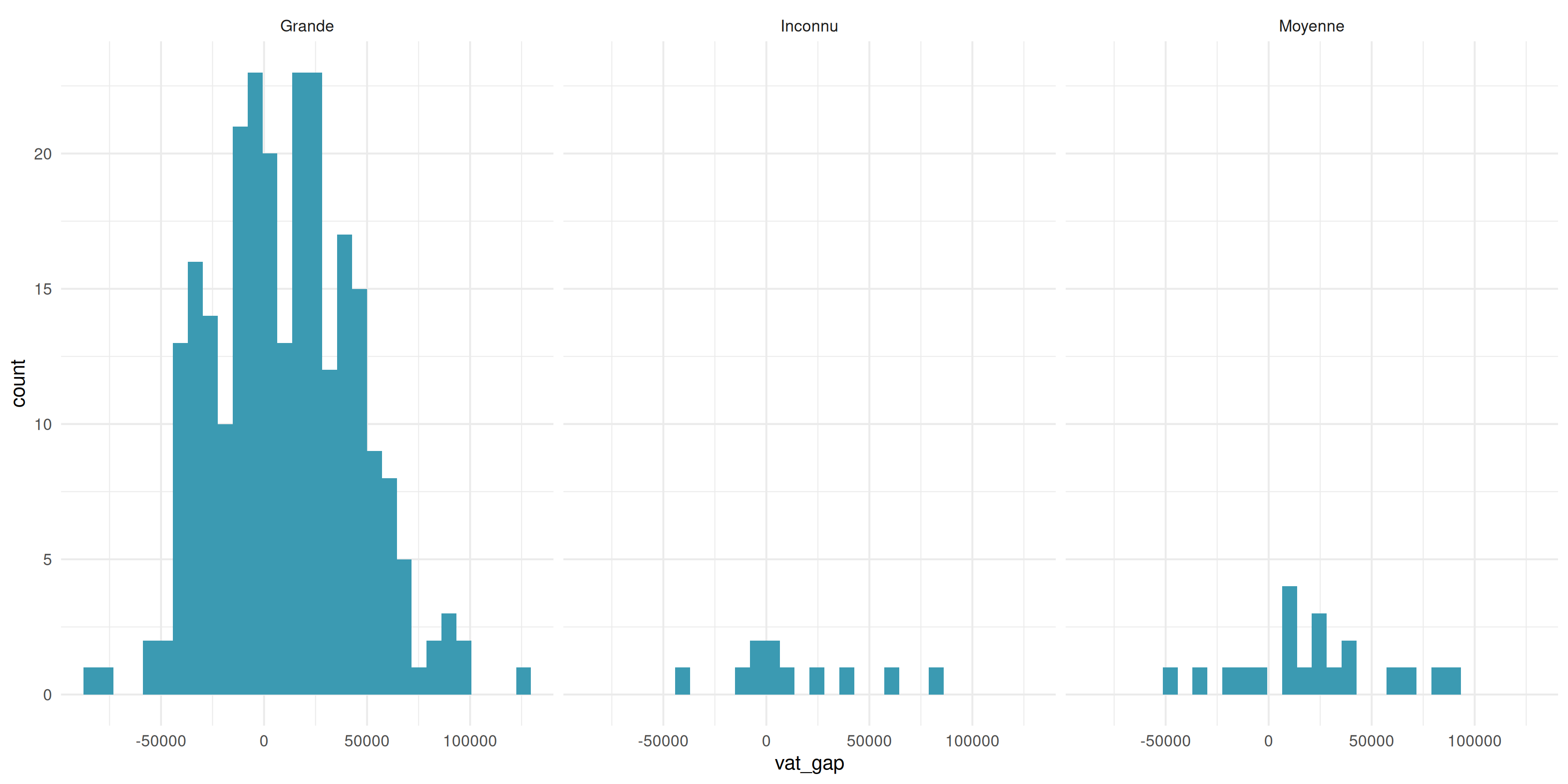 theme_minimal()Chaque barre montre le total, les couleurs montrent la contribution de chaque taille d’entreprise